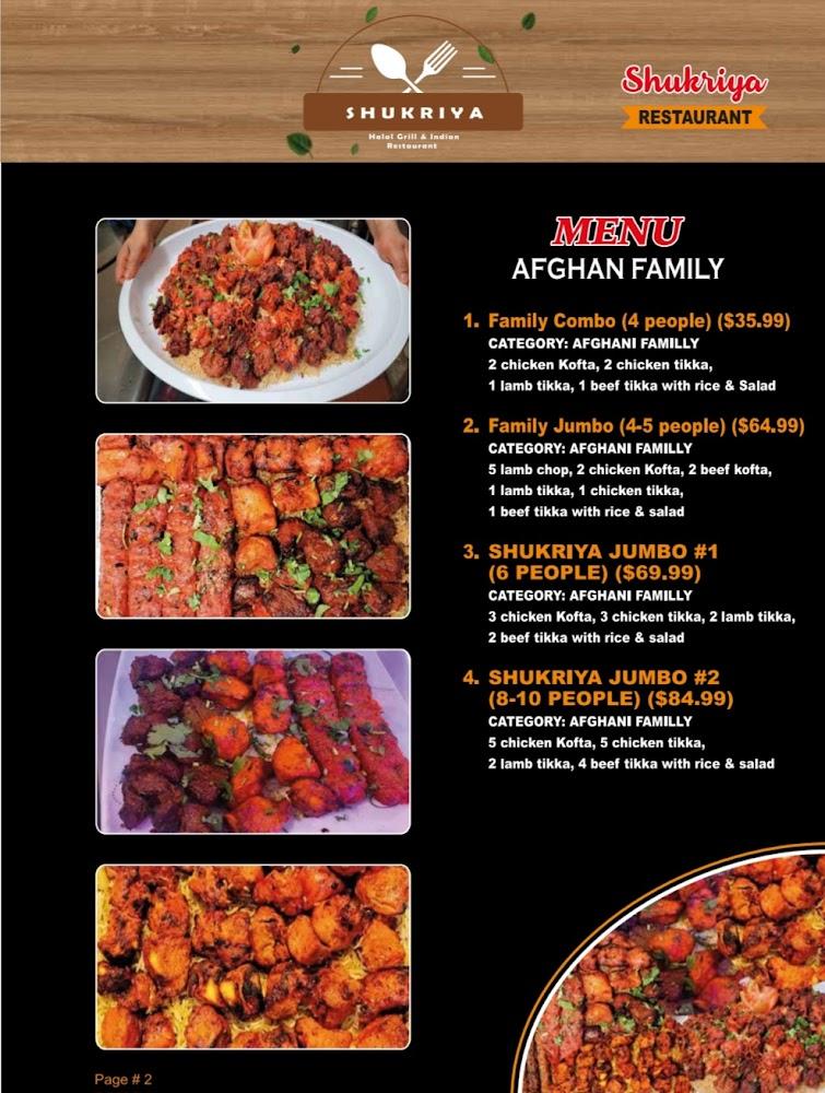 Welcome to Shukriya Indian Spice and Afghan Grill, your premier destination for authentic Indian and Afghan cuisine in Jamaica, NY. Located at 185-10 Hillside Ave., we offer a diverse menu featuring flavorful dishes, perfect for both quick bites and leisurely meals. Enjoy our cozy and relaxed atmosphere, with options for outdoor seating, takeout, and contactless delivery. Whether you're craving a hearty lunch, dinner, or a delicious dessert, our friendly staff is here to provide quick service. With vegetarian choices and halal options available, everyone can savor our traditional recipes. Experience the vibrant tastes of India and Afghanistan today!